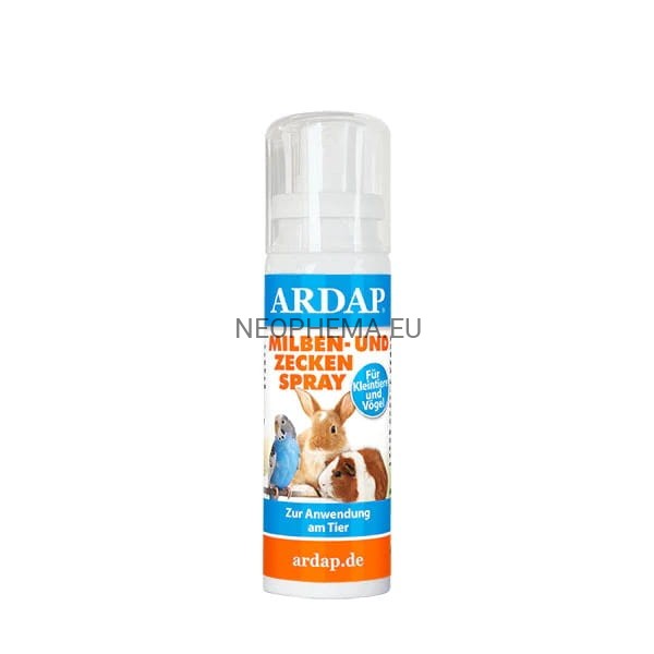 Spray przeciw roztoczom i kleszczom ARDAP dla małych zwierząt i ptaków Roztocze i kleszcze mogą powodować problemy zdrowotne u małych zwierząt i ptaków. Dlatego też zaleca się regularne zabezpieczanie zwierzęcia przed tymi pasożytami. Spray ARDAP na roztocza i kleszcze z substancjami czynnymi: olejkiem lawendowym i pyretrum z chryzantemy zapewnia niezawodną ochronę przed roztoczami i kleszczami, a także pchłami i wszami, dzięki działaniu odstraszającemu, czyli obronnemu i zapobiegawczemu.