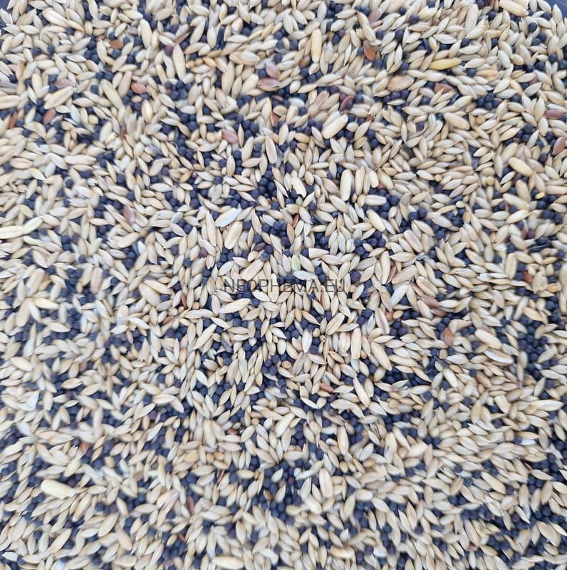 Skład: Nasiona kanaru, Czerwona i czarna rzepa, Owies łuskany, Niger, Siemię lniane, Nasiona konopi