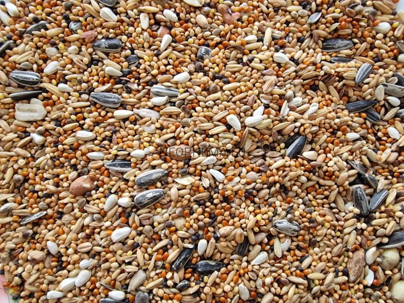 białe proso 3%, siemię lniane 2,5%, ryż paddy 1,5%,