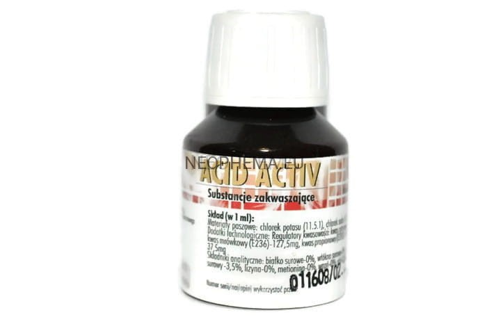 ACID ACTIV – jest bardzo dobrej jakości zakwaszaczem, zawierającym mieszaninę kwasów organicznych . Poprzez zakwaszanie wody pitnej hamuje rozwój patogennych bakterii, wirusów oraz grzybów w przewodzie pokarmowym ptaków.