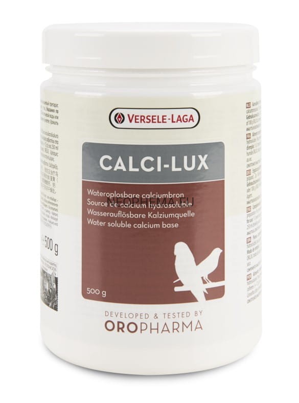 CALCI-LUX to wysokiej jakości rozpuszczalne w wodzie źródło wapnia. Ten suplement diety jest podawany w celu dobrego tworzenia skorupek jaj, dobrego rozwoju szkieletu młodych ptaków, w okresie lęgowym, aby zapobiec wiązaniu jaj oraz w przypadku niedoboru wapnia lub tężyczki wapnia.