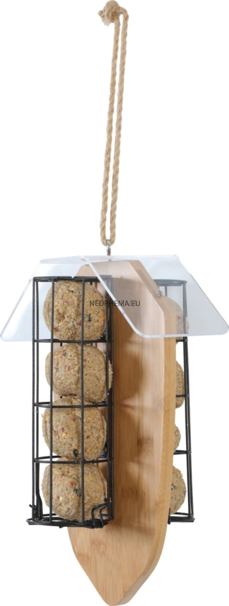 Bambusowy karmnik dla ptaków Zolux Bamboo sÅ‚uży do umieszczenia w nim kul tÅ‚uszczowych bez plastikowej siatki. Kule umieszcza siÄ w metalowym dystrybutorze, zawieszonym po obydwu stronach karmnika. Każdy z nich mieÅ›ci maksymalnie 4 kule. Główny element karmnika wykonany zostaÅ‚ z bambusa i zwieÅ„czony plastikowym, przezroczystym daszkiem, zabezpieczajÄ…cym pokarm przed zamoczeniem.